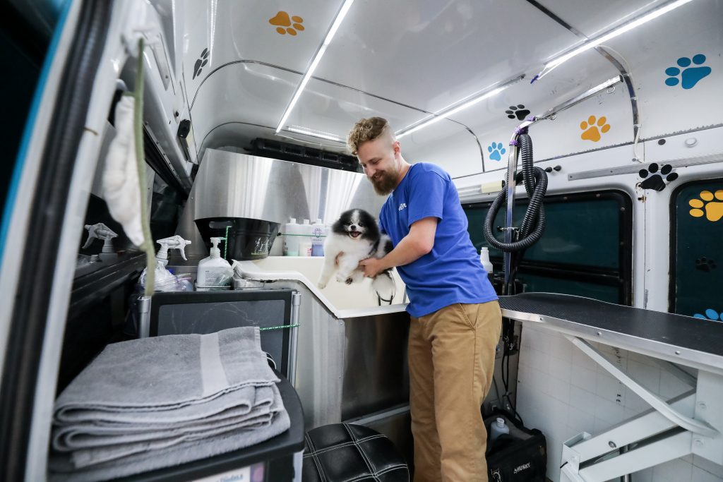 Love our salon but hate the hassle of bringing your pet in? Let us bring our unique brand of high-end spa services to your door! With our new, state of the art salons on wheels, our Certified Groomers can pamper your pooch right at your front door. Mobile grooming is a great option for shy or fearful pets who need a little extra TLC in a calm, quiet environment, or for the busy owner who doesn’t have a lot of time to spare to bring their pet in for regular grooming. Pricing is based off breed, coat type, distance and services requested. Call us or submit on online request today for a quote!